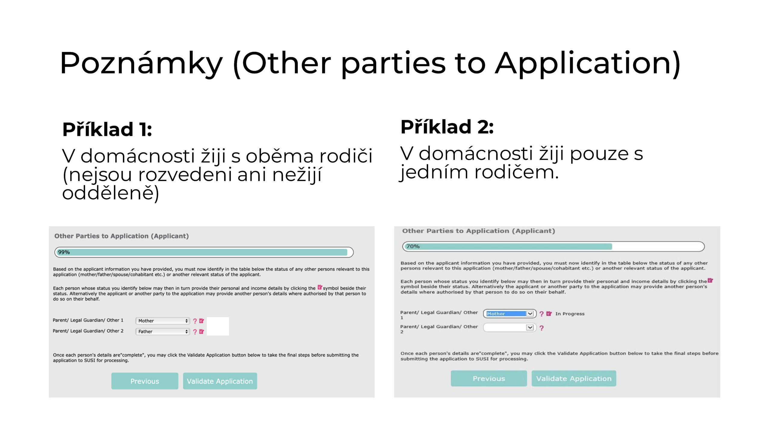 Pokud žiješ pouze s jedním z rodičů, pokračuj dále pomocí zeleného tlačítka “Validate Application”.