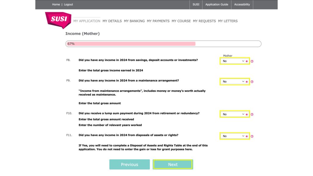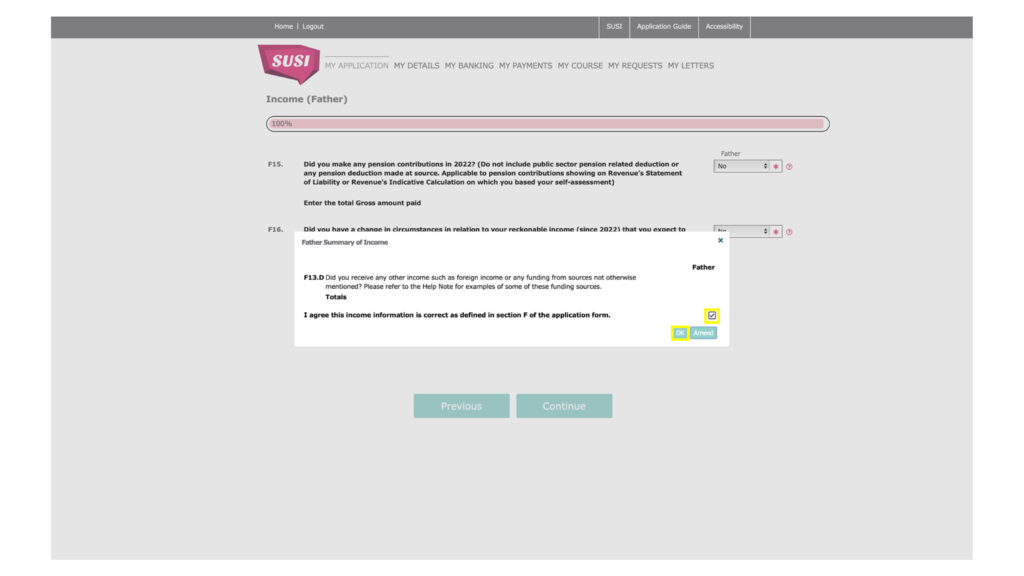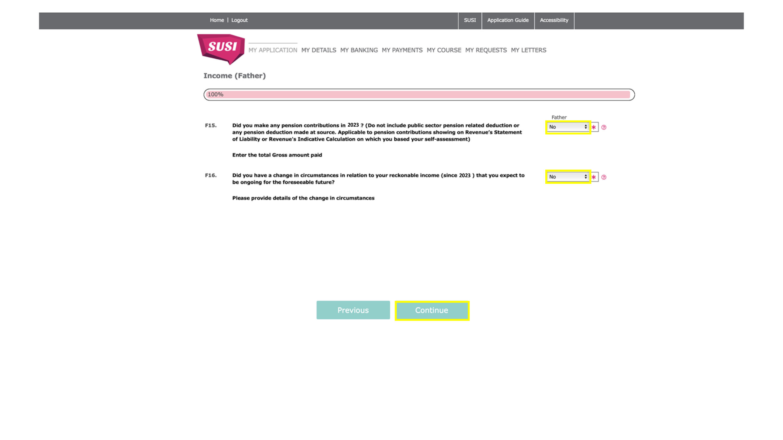 Pokud v některé z těchto sekcí nastala od minulého roku změna (například pokud se tobě nebo rodičům žijícím s tebou v jedné domácnosti v ČR / SR změnil příjem), SUSI si od tebe vyžádá patřičné dokumenty k potvrzení těchto změn.