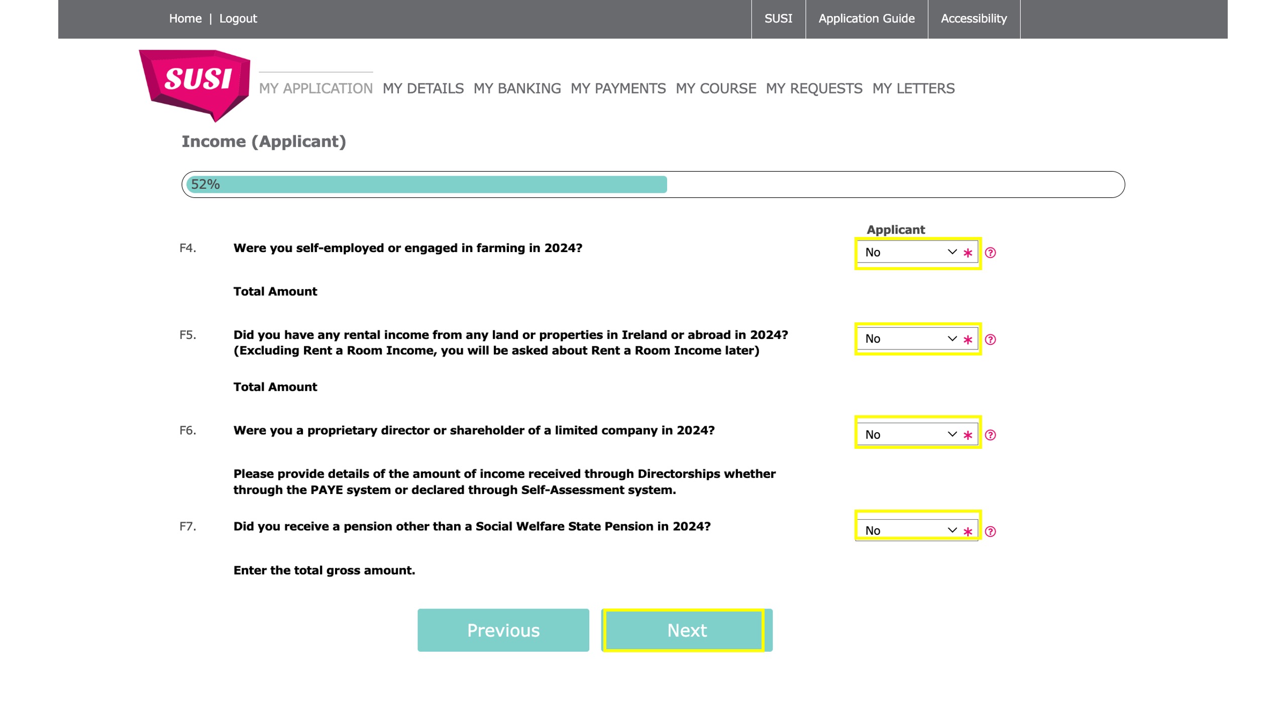 Pokud jsi v roce 2024 neměl/a žádný příjem, všechny otázky v této sekci označ jako „No“.