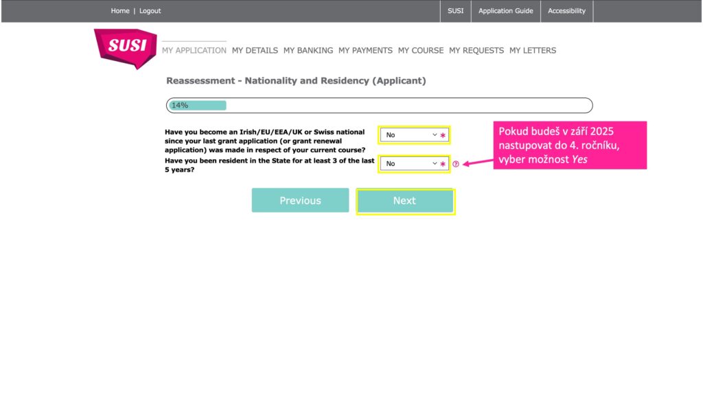 I přesto, že máš SUSI Grant předschválený na celou dobu studia, je nutné před začátkem každého akademického roku udělat tzv. Renewal application.