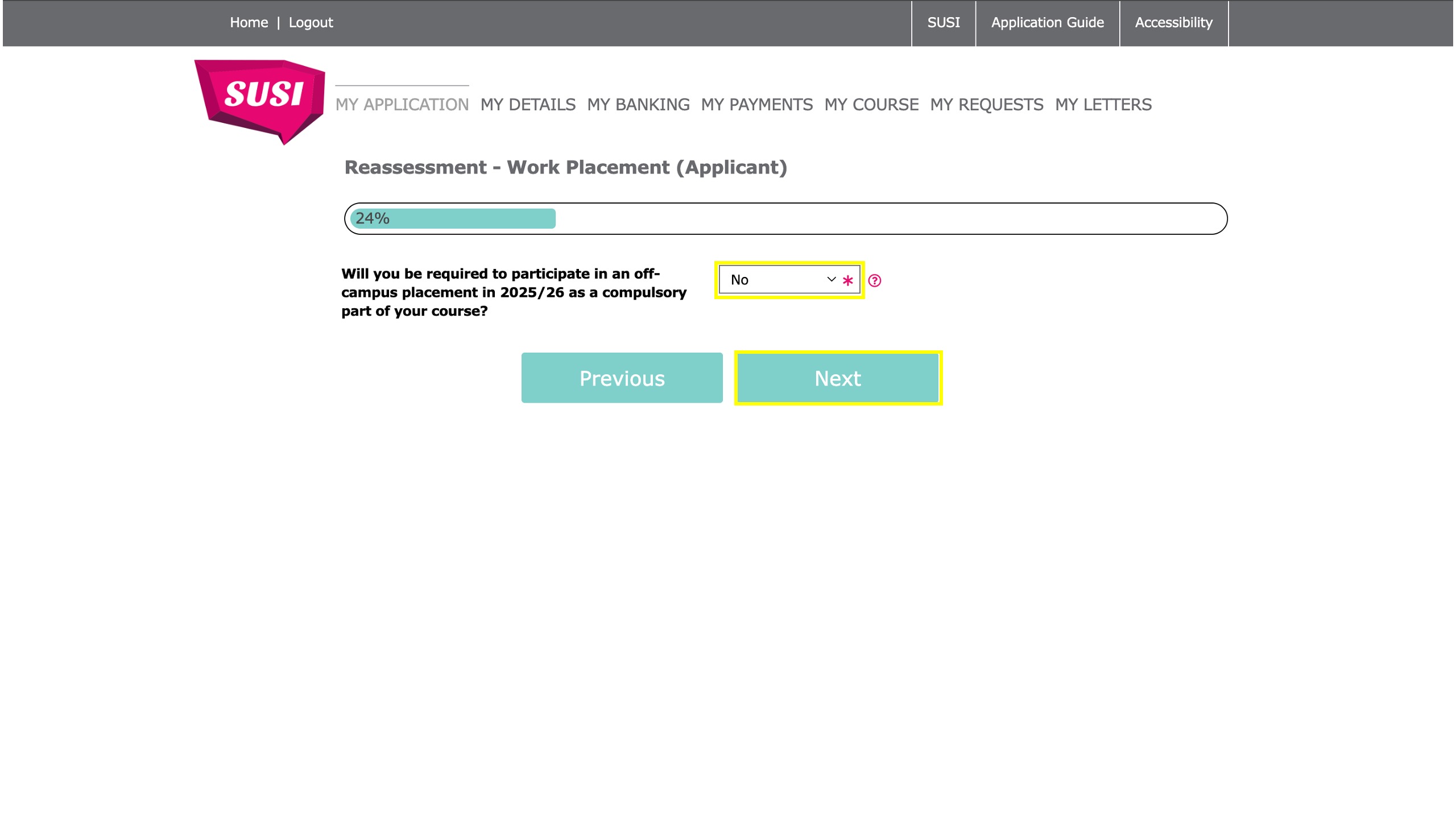 • Pokud budeš v následujícím akademickém roce určitě absolvovat Work Placement jako část svého programu, vyber “Yes“.