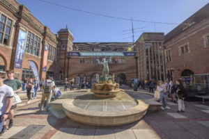 Univerzita sice není přímo v centru Birmingham, ale je jednoduché se tam dostat buď vlakem přímo od univerzity nebo autobusem za 1 libru. Samotné centrum sice není plné historických budov, ale Victoria square a Birmingham Museum and Art Gallery stojí za prohlédnutí. Před Vánoci si tu taky konají velké vánoční trhy, které stojí za to navštívit.